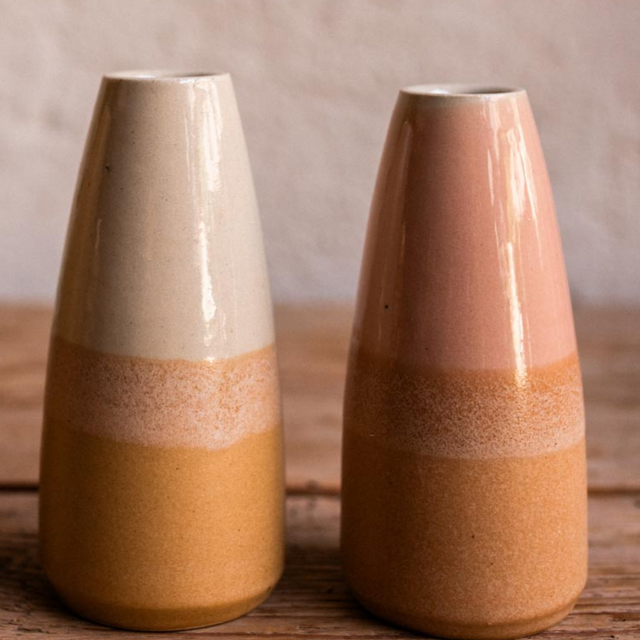 Ein schmales Väschen findet überall Platz. Alleine oder als kleines Grüppchen wunderschön für schlichte Blumendekoration. Höhe ca 12cm.